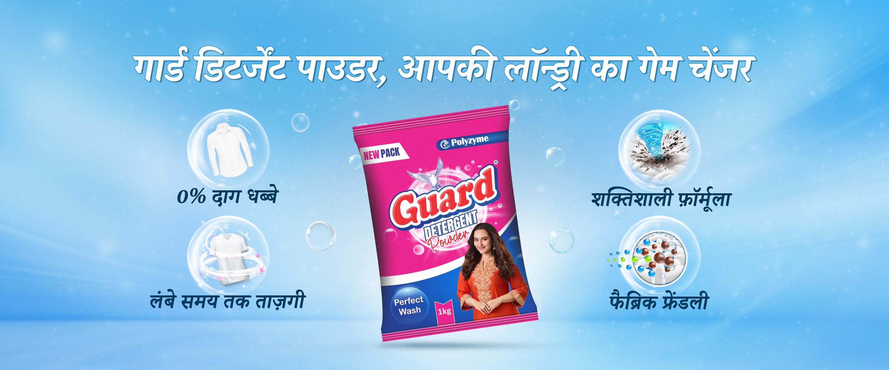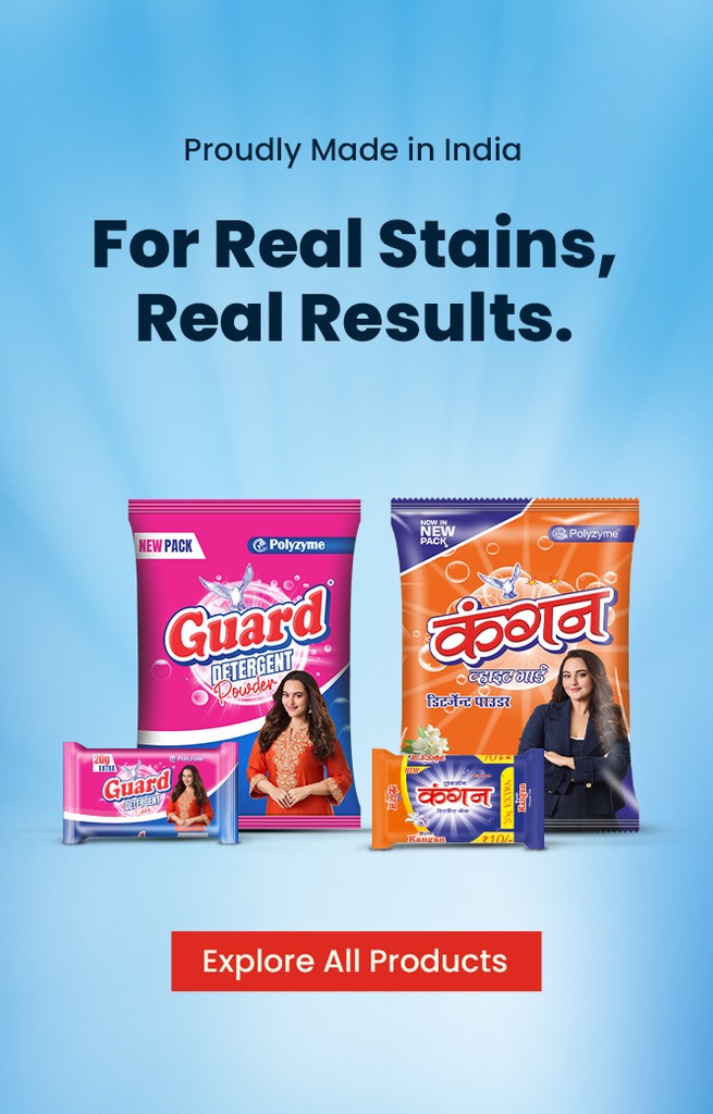 Our extensive range includes effective detergent powder, convenient detergent cake, powerful dishwashing liquid, and efficient dishwashing bars. With flagship brands like White Guard for whiter clothes and Tryzon Guard for tough stains, Polyzyme stands as a trusted detergent brand in Lucknow and beyond. We bring unmatched cleanliness and freshness, ensuring a brighter home for your family.